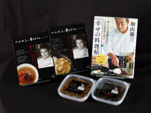 また、加山の秘蔵レシピや、レシピにまつわる様々なエピソードを詰め込んだ書籍「幸せの料理帖」(¥1,870)も販売いたします。